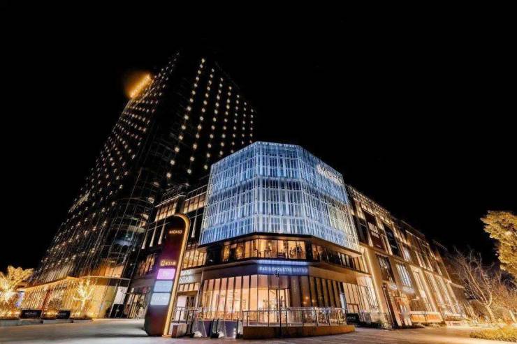 首先是恢弘大气的门头,项目以浮岛为灵感,将几根立柱化作悬浮的雕塑,撑起一片轻盈的仪式感。