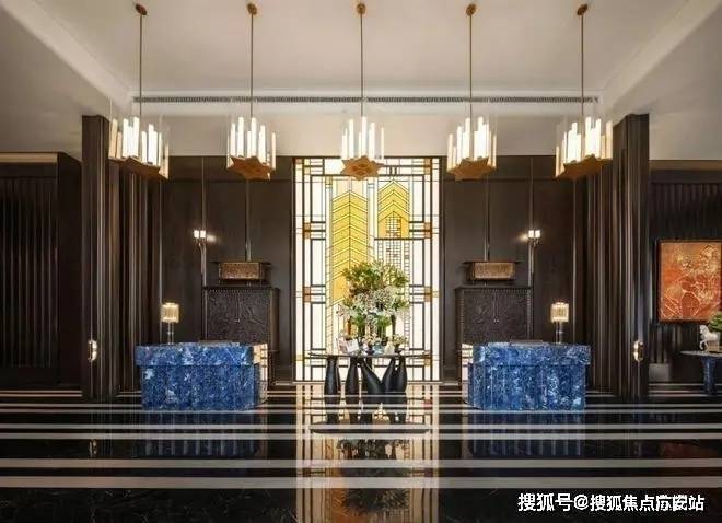 矗立两旁的是进口奢石巴西乌金石打造的大理石柱,庄重典雅.点缀画面中央的是玻利维亚蓝,这是世界上储存量极少的石材之一,被称为奢石中的劳斯莱斯.地面的拼花灵感来自伦敦瑰丽酒店,黑白相间,给我一种神秘厚重的感觉.建发·海阅首府售楼处电话:400-8657-114☎欢迎预约