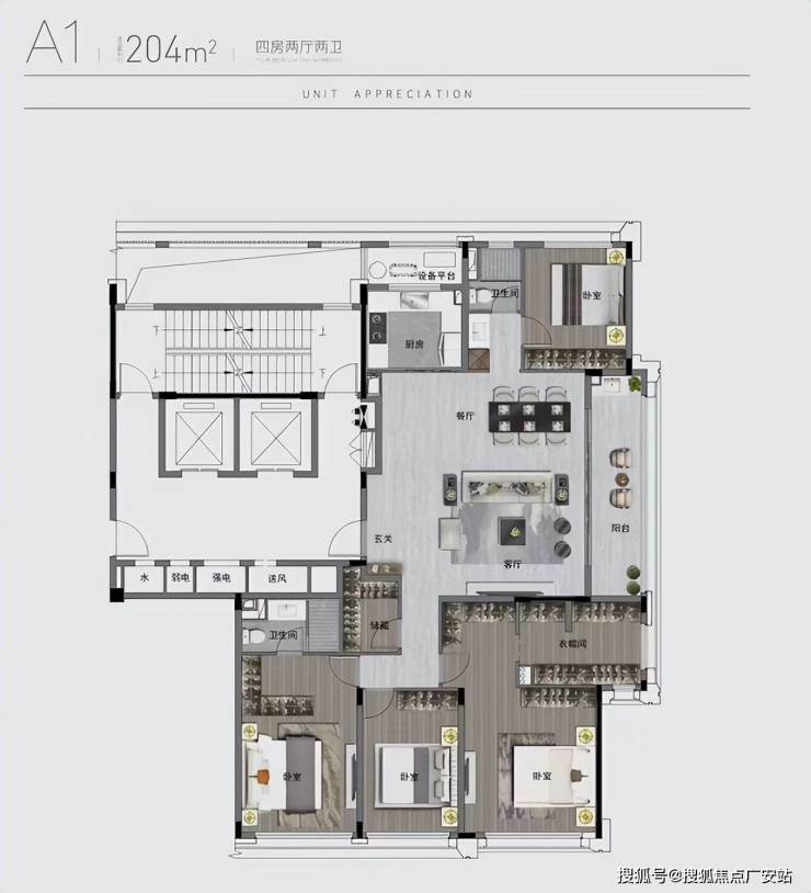纯改善建面约204m²精装住品,融信·傲世邸大四房设计,南北通透、动静分区,南向三开间拥享约11米舒阔面宽,LDKG一体化大方厅、独立储藏室等空间布局,以轩阔空间的尺度充分延展奢适生活的宽度。