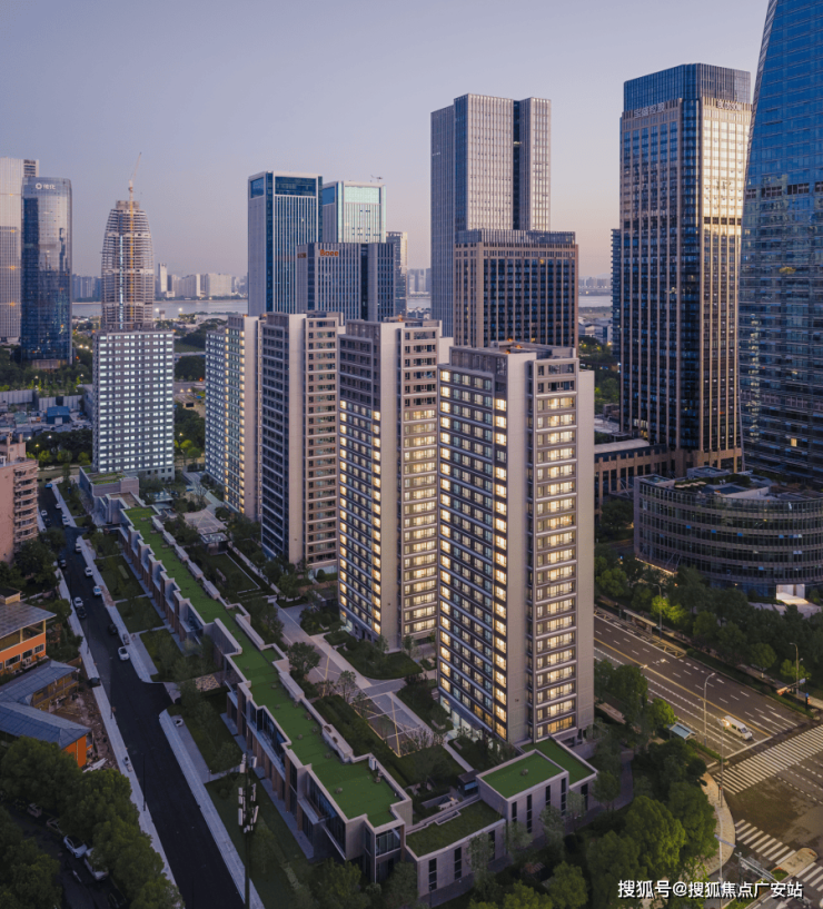 傲世邸距离“奥体三兄弟”仅一路之隔,距离在建的高端商场SKP直线约300米,家门口离2、6号线钱江世纪城地铁站直线约两三百米,单从位置上讲,的确是奥体核心地段,无可挑剔面对仅约两万方的袖珍地块,设计团队反复推演总图布局。传统的高低配或点板结合方案在此局促空间内易显逼仄,难以释放场地价值。