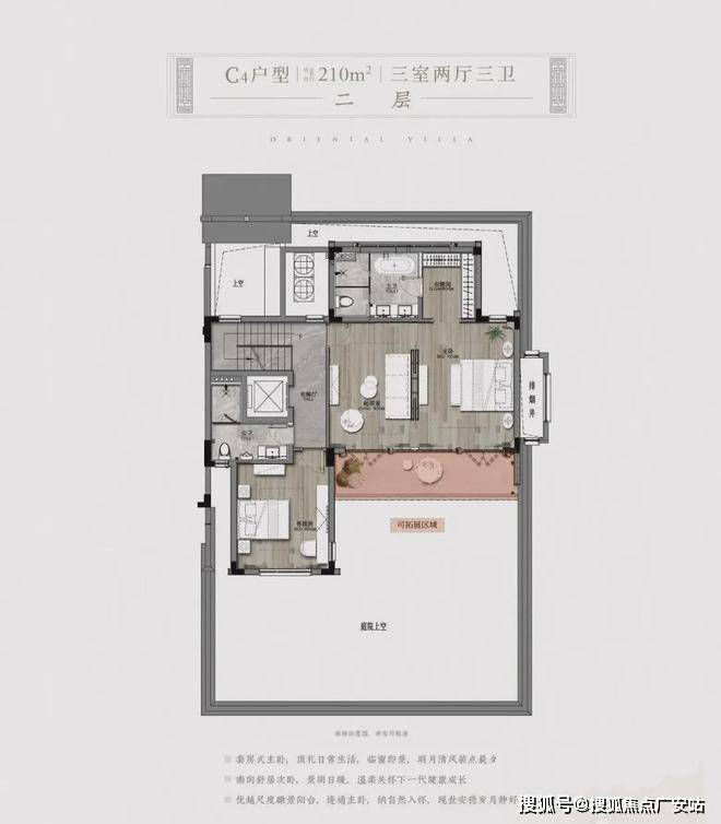比如它210㎡以上就做到了三开间朝南,部分边套花园甚至能到400-500㎡。
