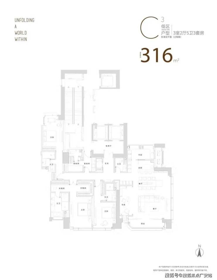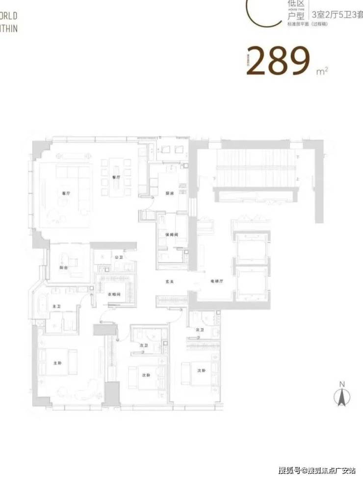 比如285㎡户型两个次卧尺度分别达4.3米*3.87米,3.8米*5.14米,并标配独立卫浴和收纳。