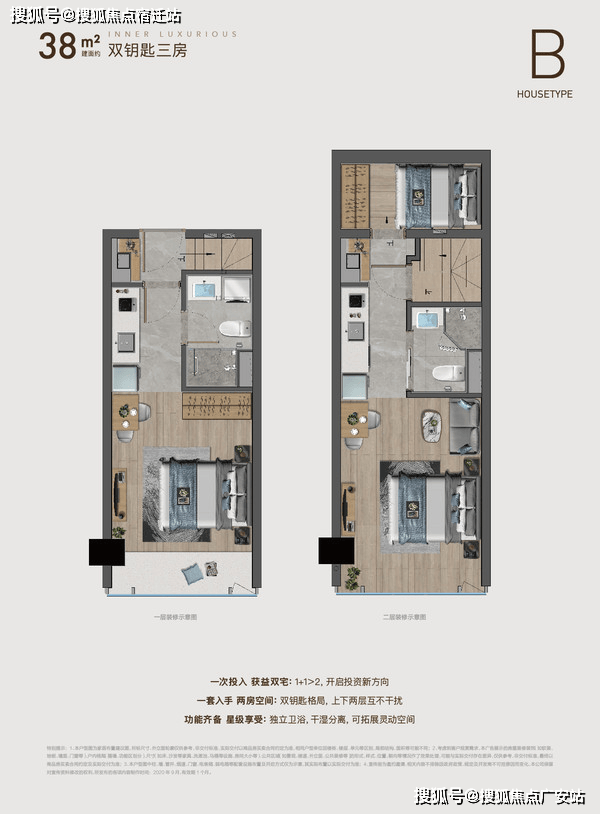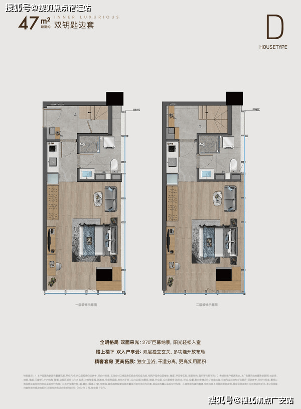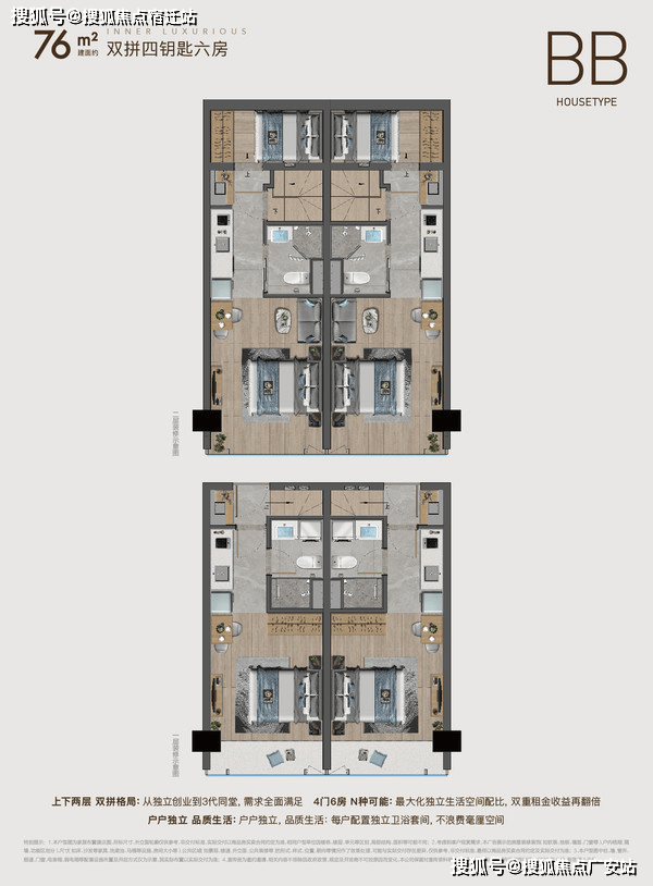 建面约28-38㎡ 4.79米精装双钥匙三房,建面约60-76㎡ 4.79米精装双拼四钥匙六房