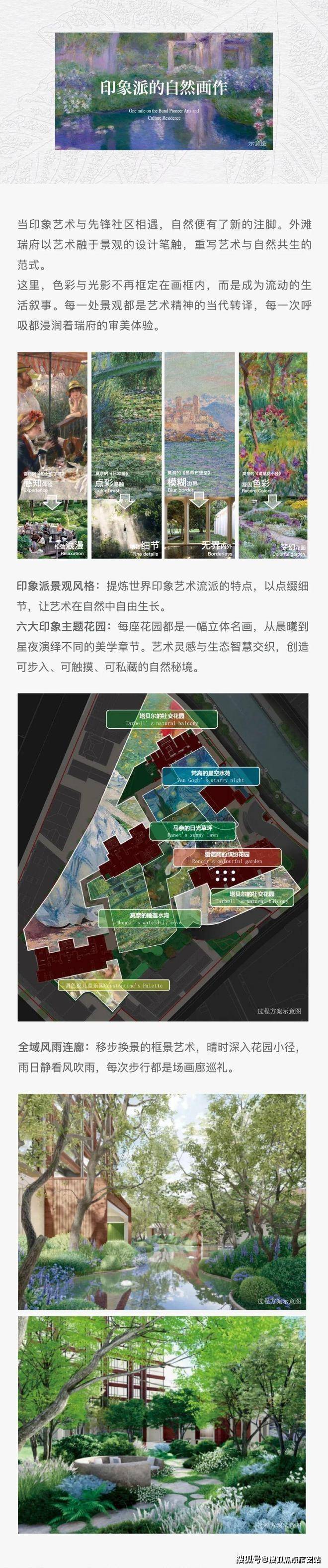 全龄景观:中央水景、四季花境、林下步道(全冠移植名贵树种)