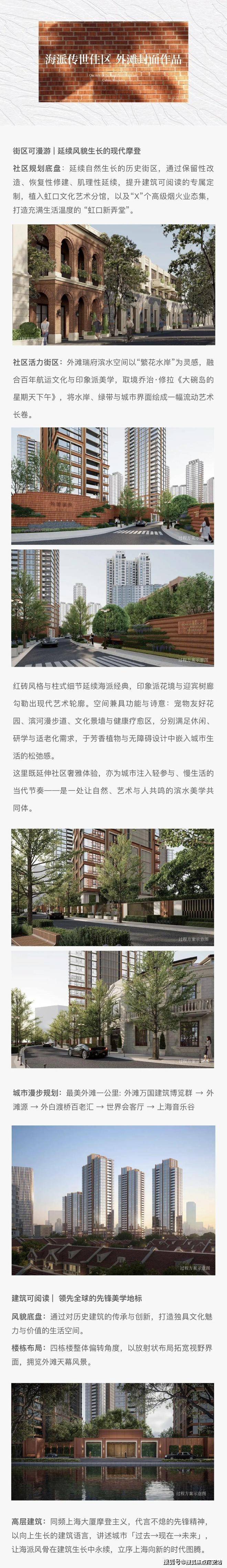 生态配套:步行10分钟达4.5公里北外滩滨江绿地,社区内1.2万㎡中央艺术花园(国际大师TROP操刀),风雨连廊实现无雨归家