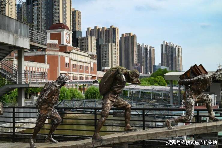中山码头旁的搬运工雕像,远处是新建的高楼 图源/草元老师