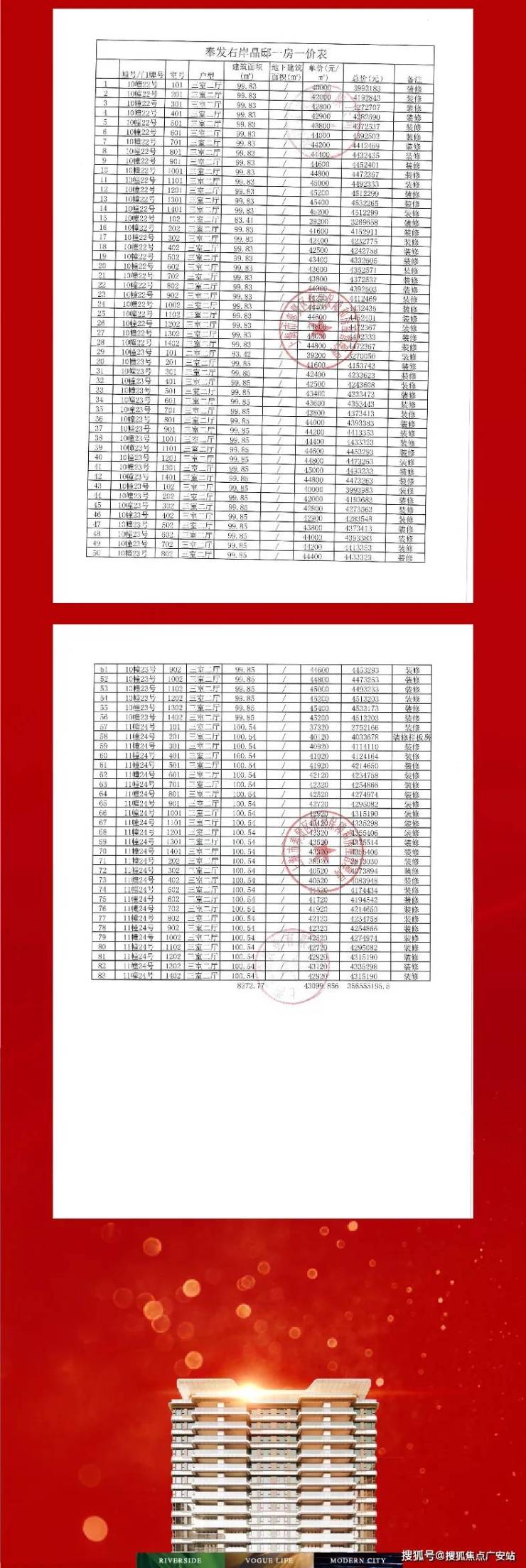 一房一价表如下: