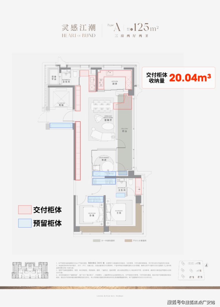 当然作为滨江首个新规后作品,125㎡户型亮点十足:
