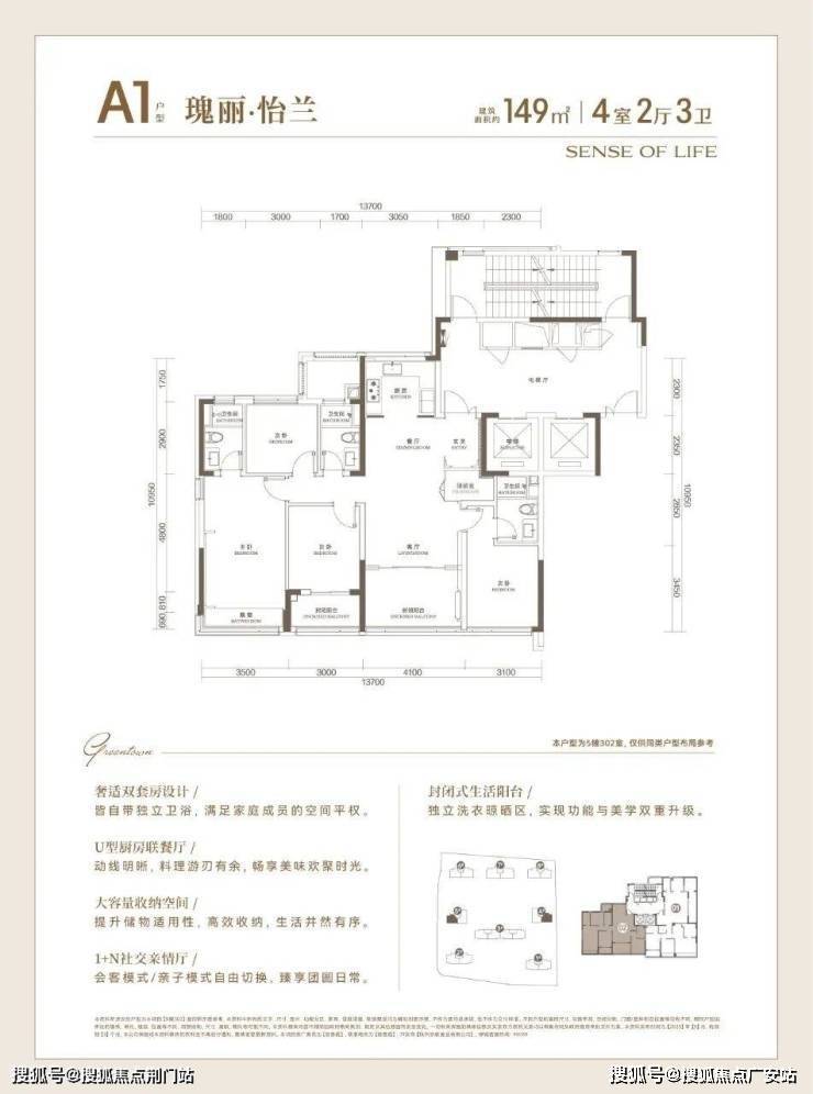 建面约149方户型,高配入门款改善选手: