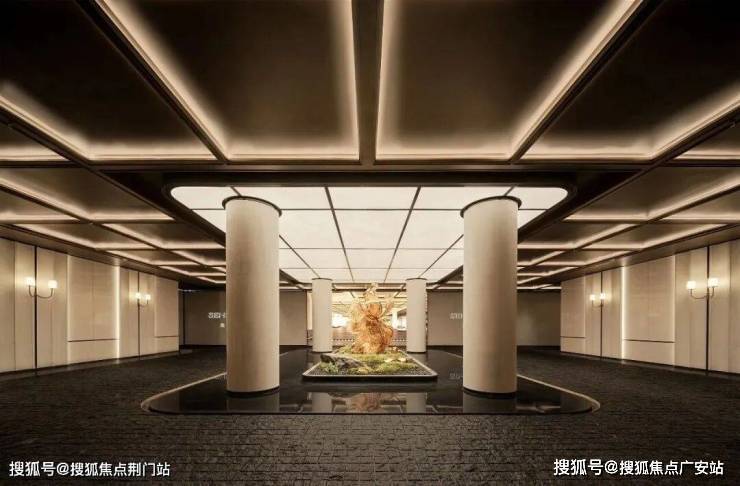 罕见的宽约66米、高约10.6米的奢阔大门头,采用522块弧形泛光皇家白玉石材打造矩阵高奢吊顶,以及四根芬迪白奢石立柱、厚重的朱式铜门、两侧大面积荷塘月色奢石、铂金钻石材景墙……打造的地标级豪宅门庭,一眼望过去,气势夺人。