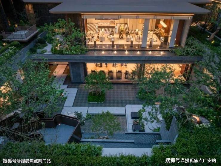 丽香庭园林整体抬升约3.7米,结合最大高差超7.5米的下沉庭院,解构赖特的「流水别墅」精髓,巧妙做出视觉层次多元的“立体庭院”。