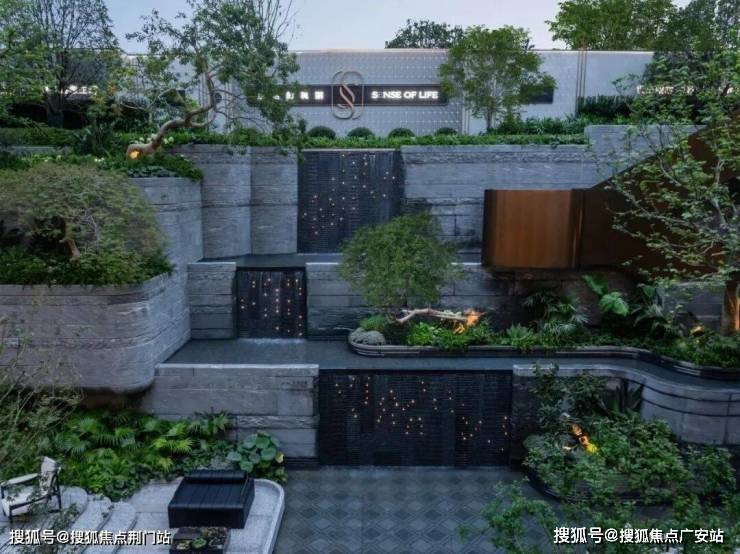 游廊蜿蜒、台地错落、绚烂水景、叠层水幕……特选香橼、红枫、鸡爪槭、羽毛枫、斜飘紫薇等点缀其间。
