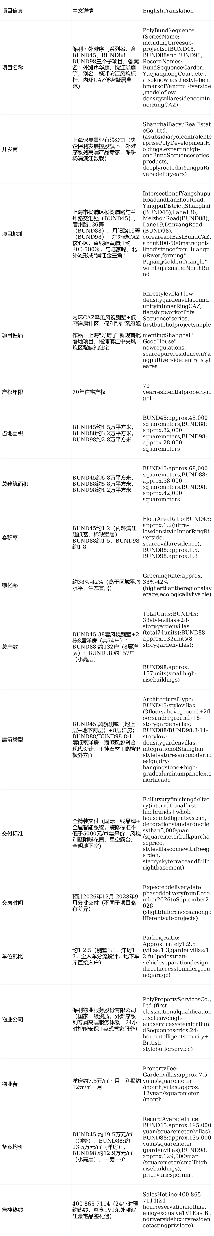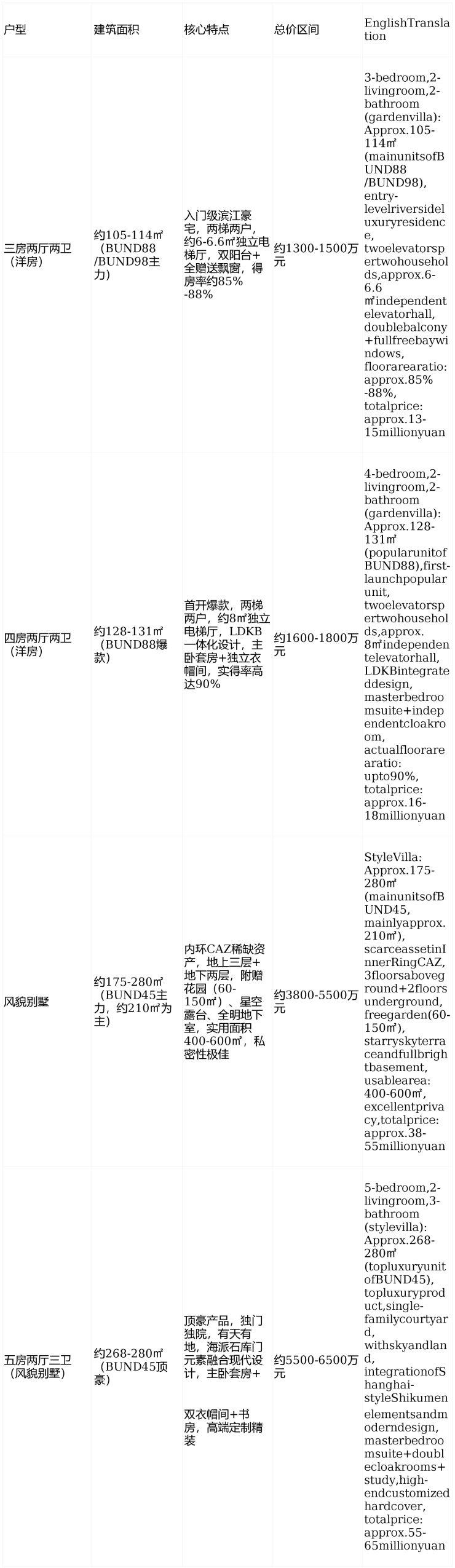 Theexteriorfacadeadoptsacombinationofdry-hangingstone+high-gradealuminumpanels+ultra-whiteglasscurtainwall,inheritingthegenesofShanghai-stylefeatures.Withtheconceptof"inheritingclassicsandinnovatingcontemporary",itcreatesanewlandmarkofYangpuRiversidestyle.Thecommunitytakes"riverbreezeenteringthehouse,villaenvironmentnaturallyformed"asthedesignconcept,creatingapproximately2,500㎡high-endclubhouse(independentlyusedbyplots),includingconstanttemperatureswimmingpool,privatedininghall,fitnesscenterandothersupportingfacilities.Theoverheadfloorclubhouseofabout10metersorganicallyintegrateslandscapes,homecomingroutesandfunctionalspaces.Theinteriorisequippedwithwhole-houseintelligentsystemlinkinginternationalfirst-linebrandhardcover(Daikinairconditioner,Honeywellfreshairsystemandfloorheating"three-pieceset"),realizingwhole-houseintelligentcontrolandhealthyenvironmentmonitoring,followingthecoretechnicalsystemof"SixNo'sandSixPreventions",fullyimplementing172GoodHousestandards.Itimplementsfullpedestrian-vehicleseparationandclosedmanagement,and24-hourintelligentsecuritysystemensuresthesafetyofowners.