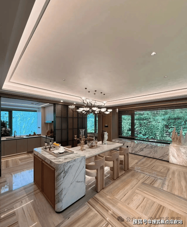 材料选用意大利石材,BVLGARIHOTEL大理石,铝型材塑型红,四层金属网格墙面以及梧桐叶金属屏风等!打造独属老静安的记忆符号,高奢定制,市区豪宅调性拿捏!