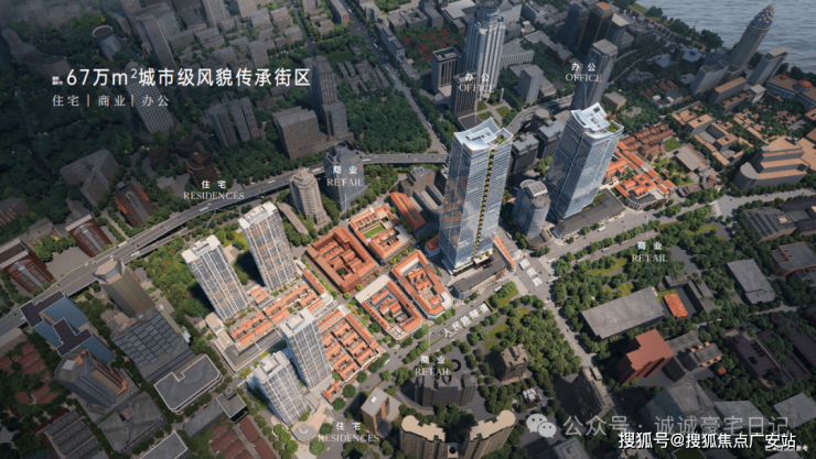 未来整个项目远景是规划为一个约67万方的城市级风貌传承街区,包含10个地块的整体开发,涵盖住宅、办公、商业等多元业态。