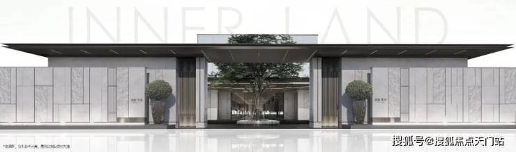 约40米恢弘尺度大门,奢选石材搭配鎏金铝板