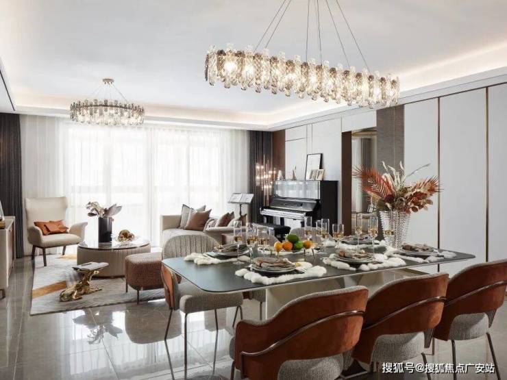 太仓禹洲·嘉誉东境,客厅不仅是家的“心脏”,更是生活点滴时光的陈列处。餐客厅一体化的设计,满足一家人用餐、会客、娱乐社交等需求,为居住者打造既实用又充满情感链接的空间,更为生活增添了更多的可能性。