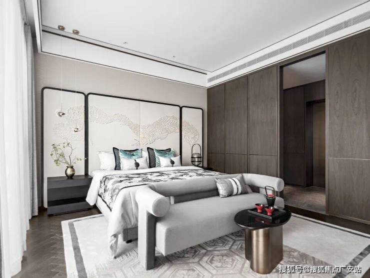 步入绍兴禹洲·印樾府的温馨主卧,每个角落都散发着独特的魅力,套房式设计融合东方古韵,空间结合了起居室、卫生间、衣帽间三大功能区域,功能性与私密性兼具,成就了一方专属的休憩天地。