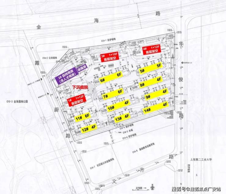 对比来看,新地块优势在于距离地铁站更近,直线距9号线顾唐路站、9号线及12号线金海路站约900米,而且地块面宽更大,户型设计可优化空间多;挑战则是北侧即为金海高架,需投入隔音降噪成本,且涵盖4000㎡商服用地。