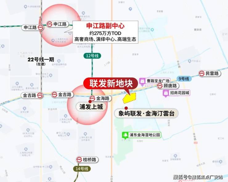 项目是三轨交环绕的真地铁盘,项目距离9/12号线金海路站约800米,另外还有14号线桂桥路站。