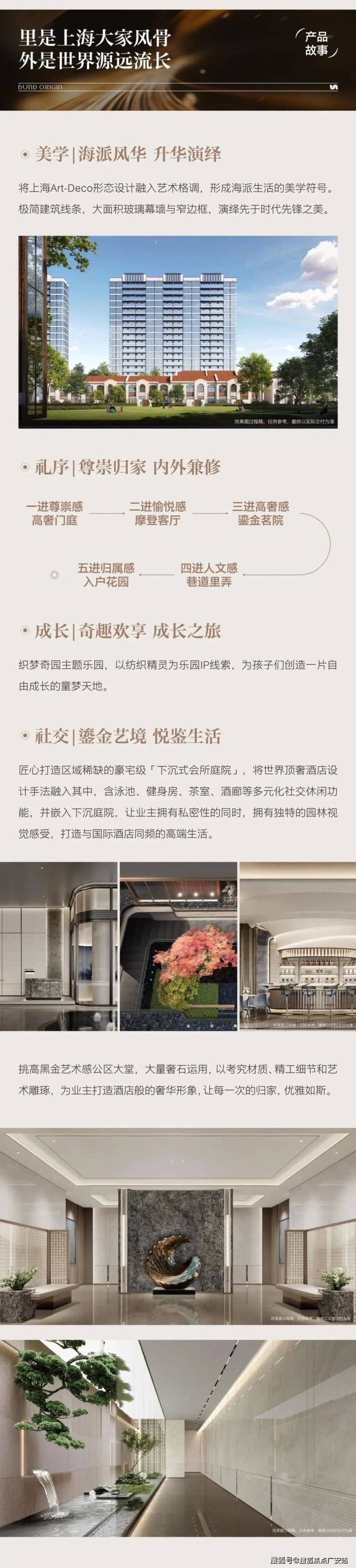 项目以“海派建筑文化”为基底,高层立面选用浅色石材+古铜色金属板材+高透落地玻璃,有颜又有料。