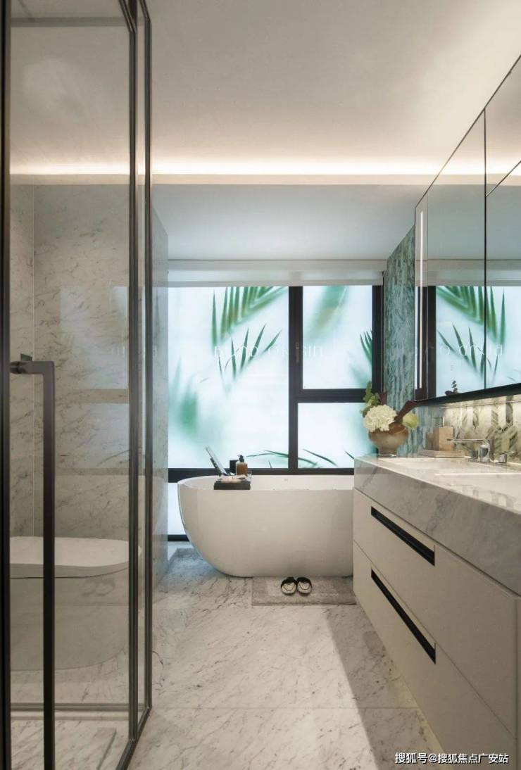 主卫墙面采用香格里拉翡翠奢石拼花,搭配德国当代龙头冷热分离式设计,宛如置身五星酒店SPA。