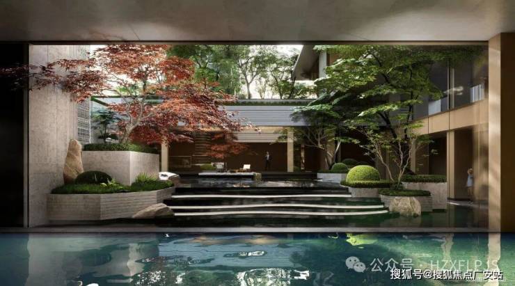 布局特色:社区规划"七岛洄游"景观结构,打造悬浮绿洲入口、门厅飞瀑沉浸式景观、下沉庭院及会所