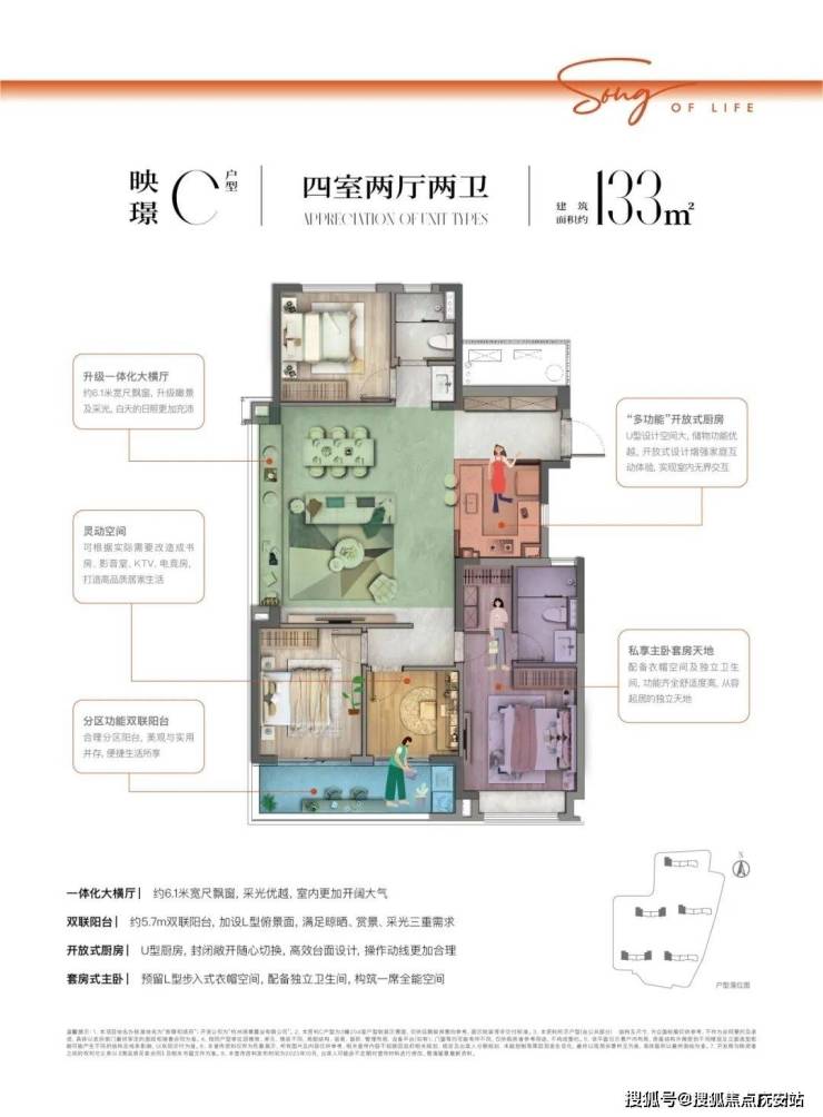 主楼基座采用蓝眼睛石材,外立面双c设计,部分铝板材质,高级简约且富有秩序性。更舒适- 相比高层产品,小高层层高不超18层,12-17F整体户型更方正,南北通透性更好,居住舒适度、私密性更好。更低密- 约1.8容积率,四季花园景观打造,让生活时刻亲近大地与自然。