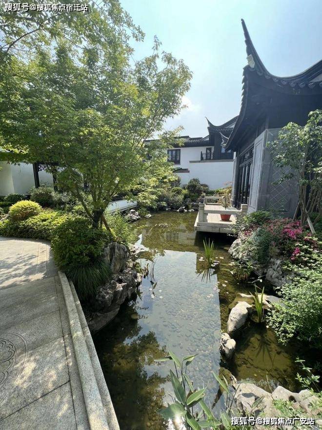 黑、白、灰三色为主色调的建筑,搭配上门洞、漏窗、飞檐等传统元素,展现出古典园林的精髓。开发商巧妙地运用借景、框景、漏景等手法,将自然景观与建筑融为一体,营造出一种宁静、和谐的生活氛围。