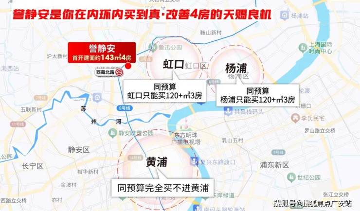聚焦静安区其他板块,和誉静安建面约143㎡四房总价差不多的预算,如果选择内中环的大宁,只能买个130㎡的3房。