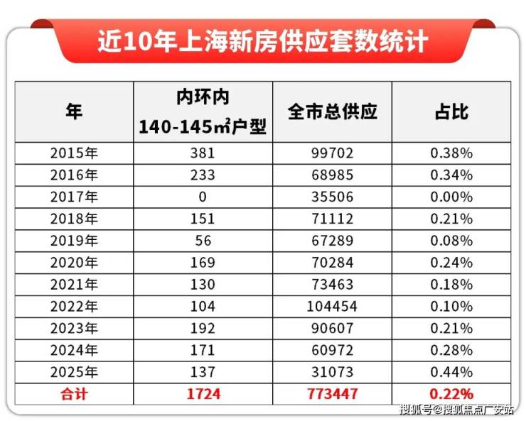 据网上房地产数据显示,近10年整个内环内每年入市的140㎡+的4房户型基本都是百余来套,占比总池子约千分之二,稀缺性可见一斑!