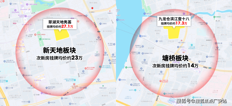 要知道,石材和铝板都是外立面材质中最为昂贵的一类,只有在城心塔尖地段,才能做到100%使用。比如新天地的翠湖天地隽荟,塘桥的九龙仓滨江壹十八等,在二手市场的价格普遍要高出同板块竞品3-5万/㎡!