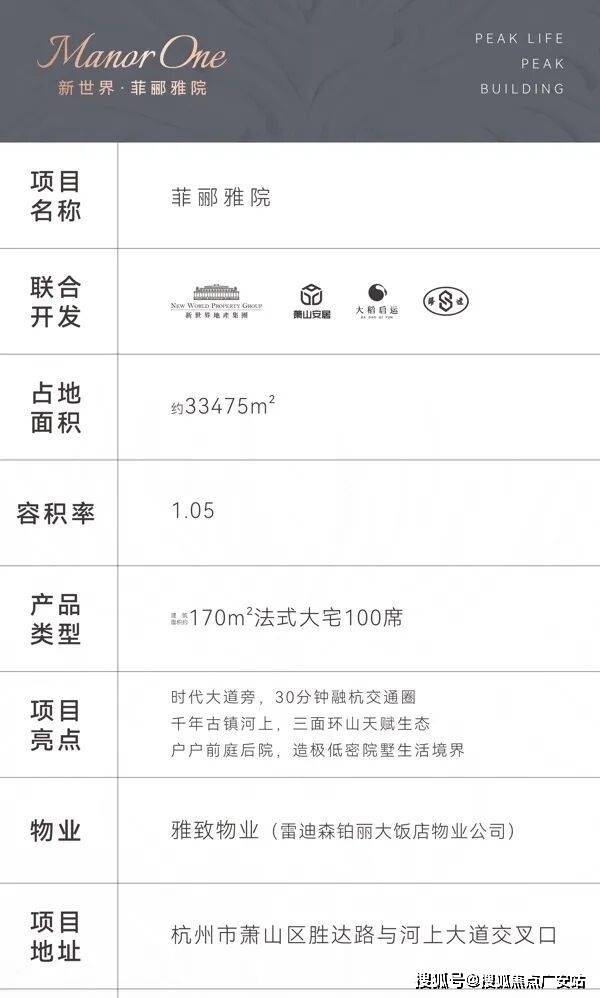 浙江新世界继杭州之门东塔OPUSONE之后ONE系列又一扛鼎续作ManorOne菲郦雅院,落子杭州南部河上古镇,临时代大道,筑奢雅墅区,敬献杭城峯层人物。