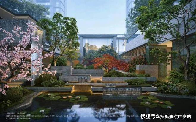 将水系蔓延至架空层及各个景观节点,漫赏滨湖水岸生活体验,名园盛韵的环秀池庭。