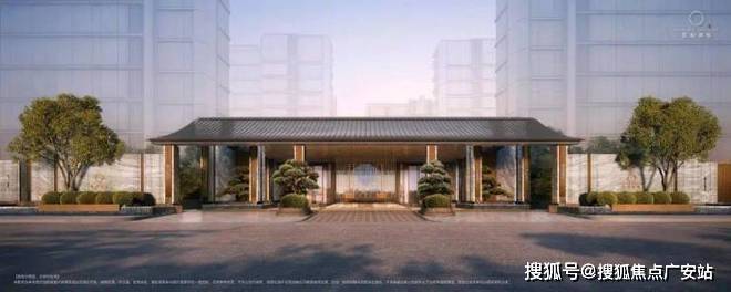 绿城凤起潮鸣主入口打造宋风雅致大门,酒店式车马院落客区,金碧辉煌的审美色调,大面积是奢石,给予归家尊崇仪式。