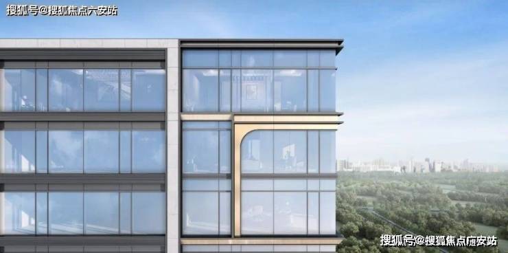 铝板、大面积玻璃与金属框线组成了璞云东方的“第一眼心动”,尤其是工艺精巧又极为吸睛的R角金属线框,犹如一道金色飞虹,让人一眼难忘。