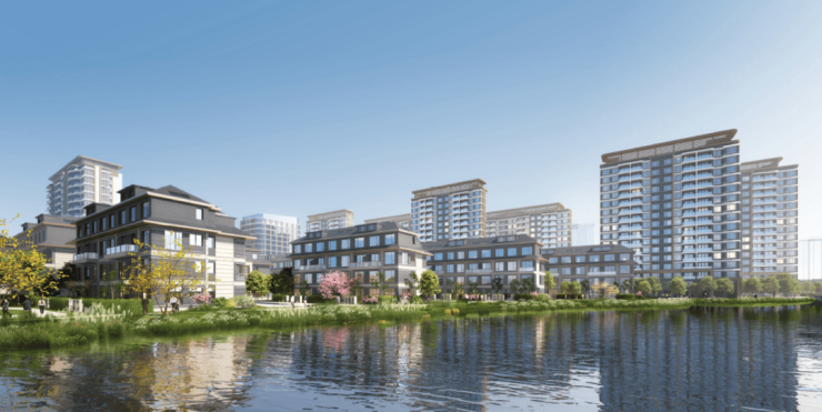 仔细看项目的楼栋排布,别墅组团居于东面贴近水系,实现真正的依水而居。高层围合别墅排布,高区视野几无遮挡,纵享一线公园水景!