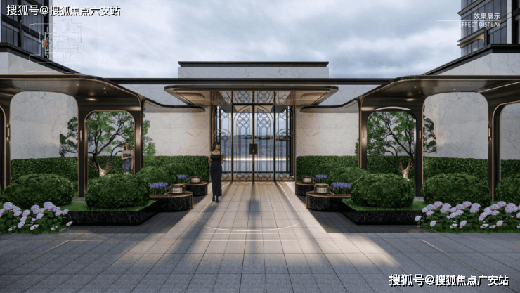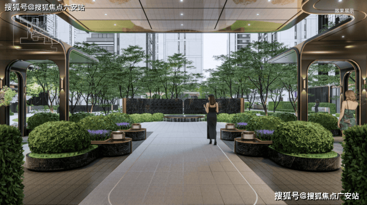 比如“原生围合社区”、风雨连廊,从高奢酒店中获得灵感的酒店式落客区、度假风园林,以及千万级住宅中都不多见的下沉式会所!