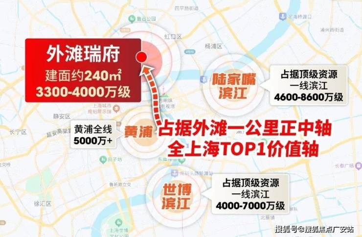 放眼虹口区,北外滩新房均价已至约17.5万/㎡,240㎡户型总价轻松突破4000万;