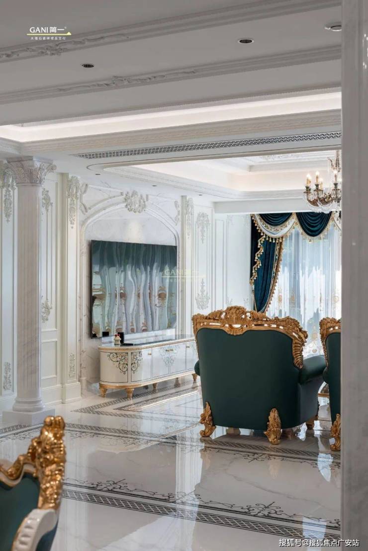 法式风格非常注重对称性,通常以一个视觉中心点,如壁炉展开布置,围绕这个中心点进行对称布局,营造出恢宏的气势和奢华的居住空间。