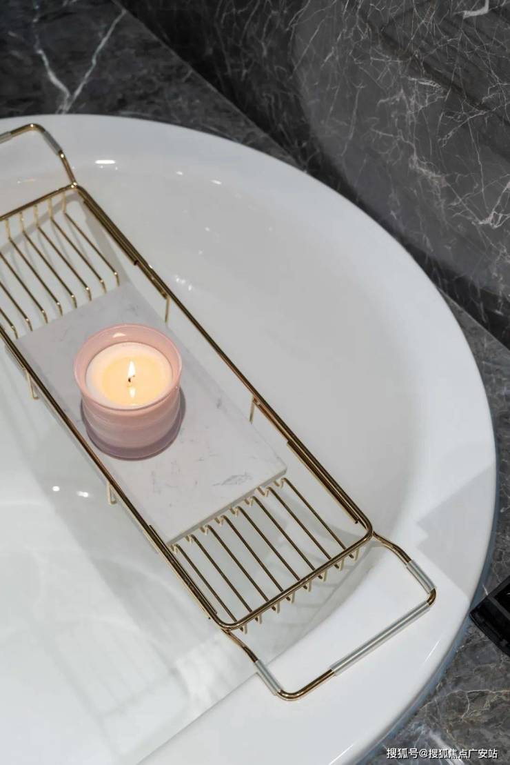 次卫柔和灯光搭配金属线条,打造一个自然舒适的私人领地,让日常洗漱也成为一种享受。