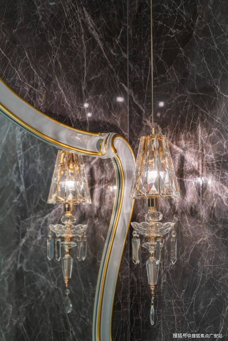 即便是私密的卫浴间,挚友也未曾忽略对美的追求。简一阿波罗灰墙地通铺,与质感水晶灯、法式风洗漱台相得益彰,展现出低调而高级的自然美感。