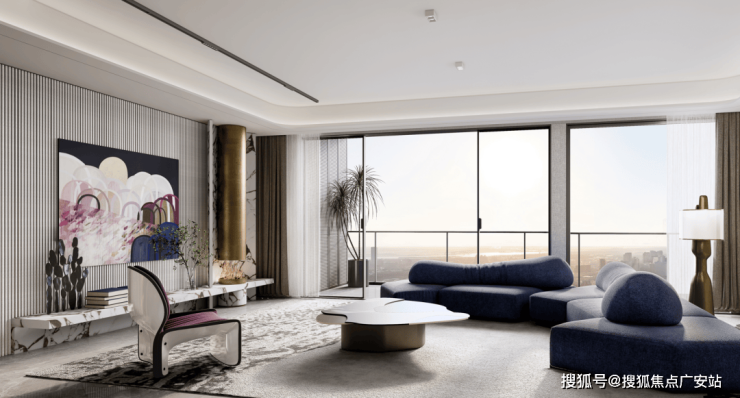建筑外立面则采用铝板线条+大面积玻璃栏板,在自然光下折射出富有韵律变化的光芒,与空中塔冠彼此呼应,构筑国际前沿审美流体建筑。