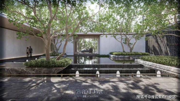 虹桥润璟的入口升级为格栅景墙与奢石水景妆点,气质也从「网红」款进阶到了「明星」款。