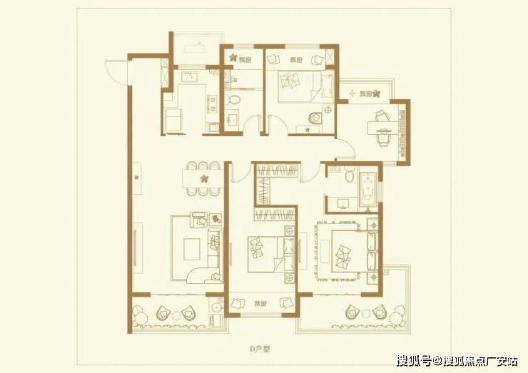 F户型 超大五房/岛台双厨建筑面积约226㎡/5房2厅2厨3卫