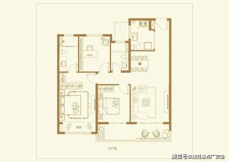 B户型 方正三房/南北通透建筑面积约116㎡/3房2厅2卫