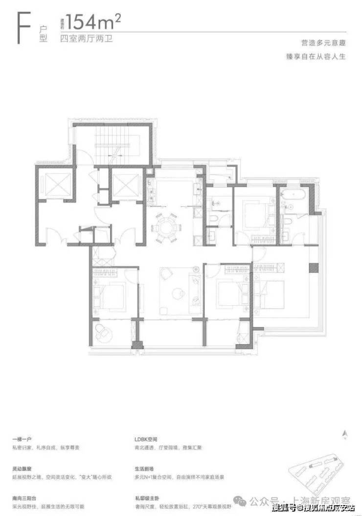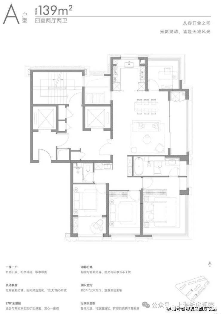 部分楼栋设有架空层,社区设置下沉式庭院、泳池会所,并配建部分社区配套与公共租赁住房。产品上也引入270°转角玻璃、双阳台、N+1灵动空间等设计。