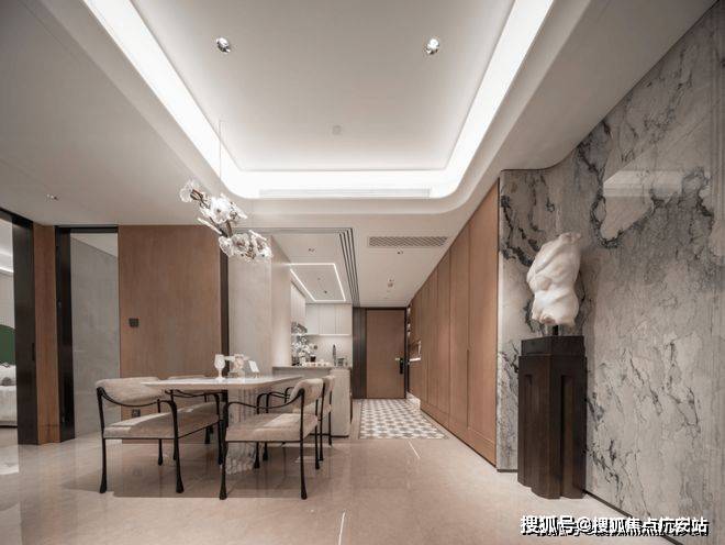 更让人惊喜的是,这里还有智能家居系统、消毒鞋柜以及用于冰箱内嵌冰箱的“S墙”。仅仅是入户这一部分,就已经亮点满满,让人充满期待。可以想象,在这样的空间里生活,每一天都如同置身于梦幻之中。