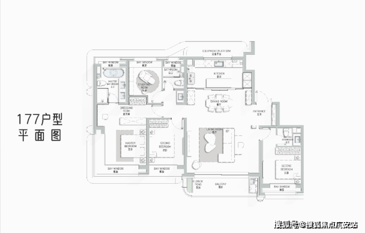 177㎡艺术贵雅奢邸是海上·清和玺压轴力作,延续玺系经典的设计理念和思路,阔朗的四面大开间设计,客厅做到了大横厅设计,延续了曲面流体的阳台,并赠送了独具特色的阳台迷你花园。
