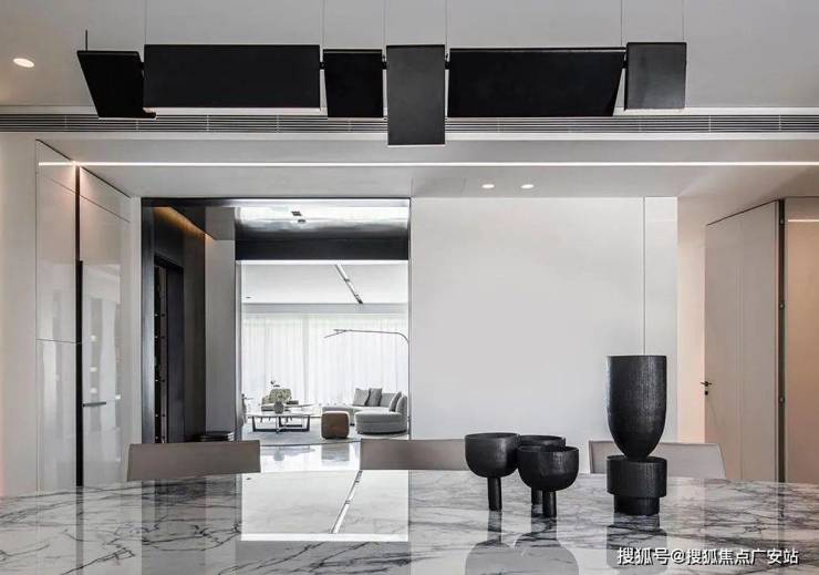 全室采用简约的线条、纯粹的材料、利落的造型等元素,在现代化的住宅中,除了来自于经济层面的批量化需求,更强调纯粹美学。